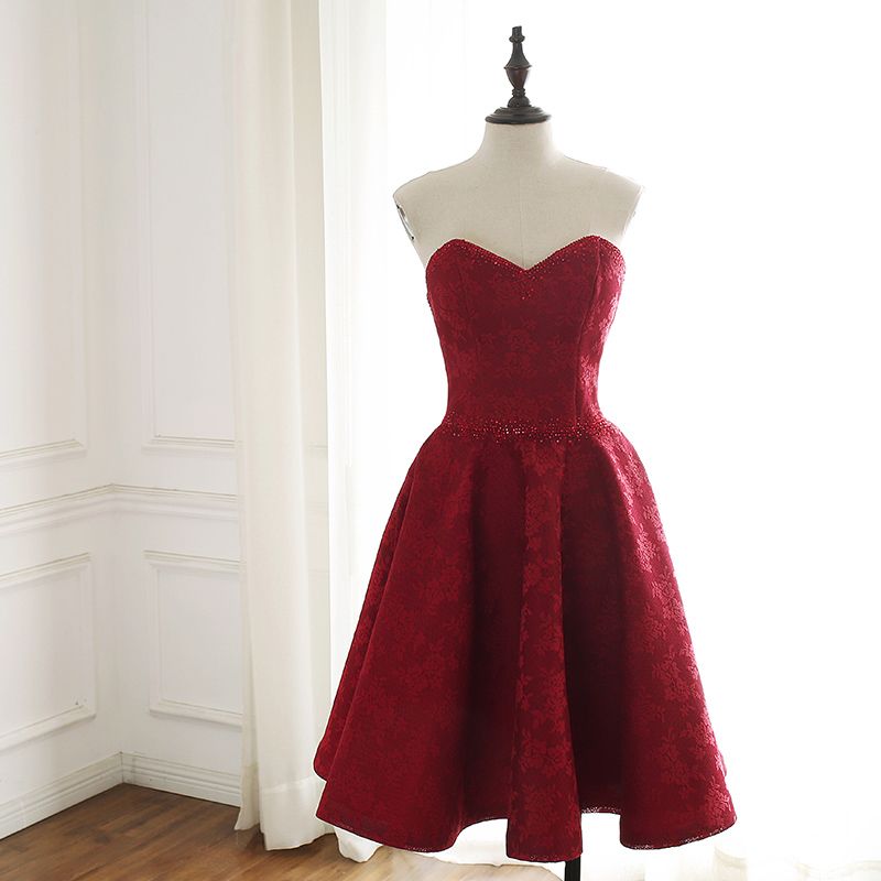 2019 Dark Red Lace Prom Dress Short Summer Party Dresses Lace With
