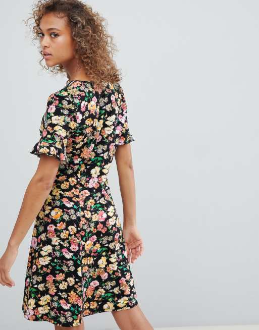 Asos Design Button Through Tea Dress With Frill Sleeve In Summer