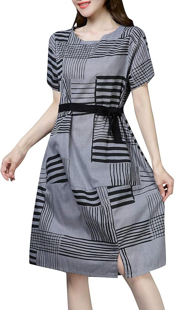 Capsa Summer Dresses For Women Vintage Print Short Sleeve Loose