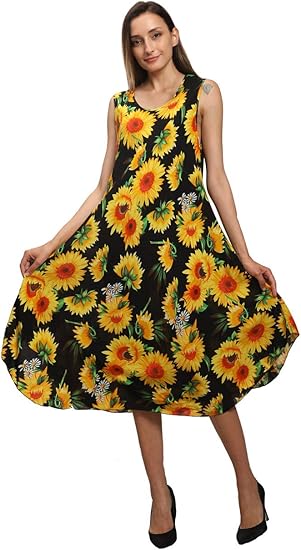 Fomolom Women Summer Dresses Floral Sleeveless T Shirt Midi Dress
