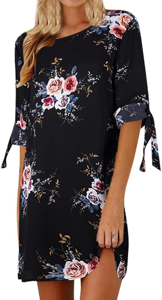 Teresamoon Deals Women S Bowknot Floral Print Beach Dress Summer Dress Amazon Ca Clothing Accessories