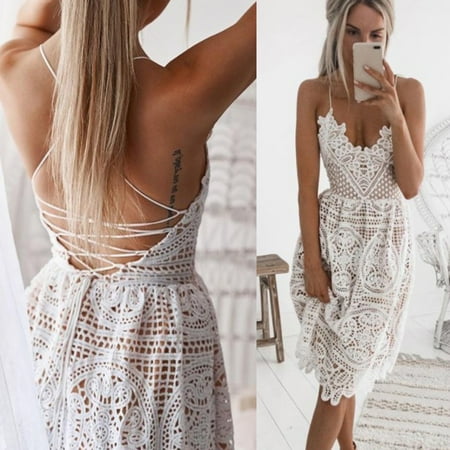 Women Party Dress Deep V Neck Crisscross Backless Crochet Lace Sleeveless Halter Summer Midi Dress White Black Walmart Canada