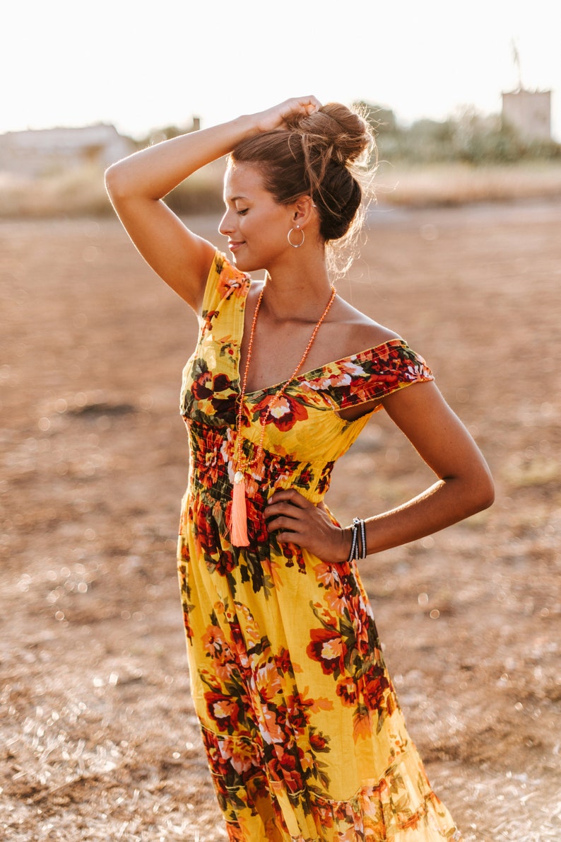 Yesno Women Casual Loose Bohemian Floral Print Empire Waist Spaghetti Strap Long Maxi Summer Beach Swing Dress Xs 5x E75 At Amazon Women S Clothing Store