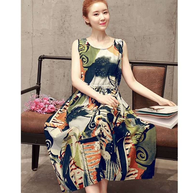 New Summer Dress Cotton Linen Dresses New Fashion Women Casual