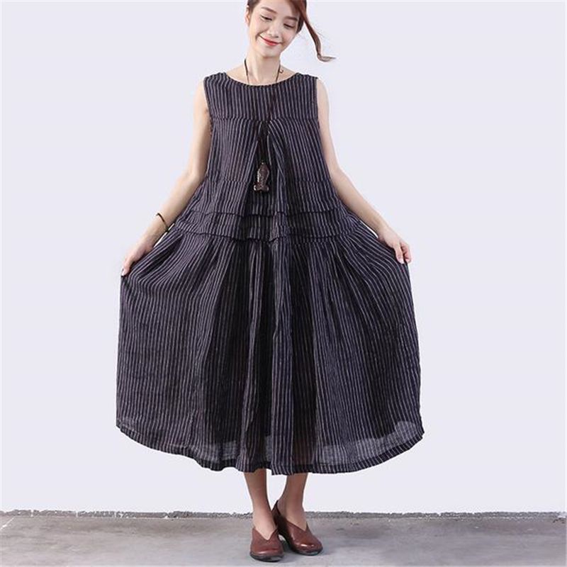 B22340a Summer Ladies Cotton And Linen Retro Loose Cotton Long