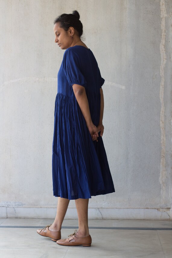 Summer Dress With Short Balloon Sleeves Handwoven Muslin Etsy