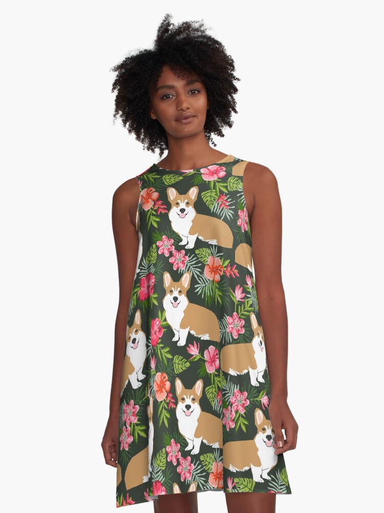 Welsh Corgi Hawaiian Print Pattern Florals Tropical Summer Dog
