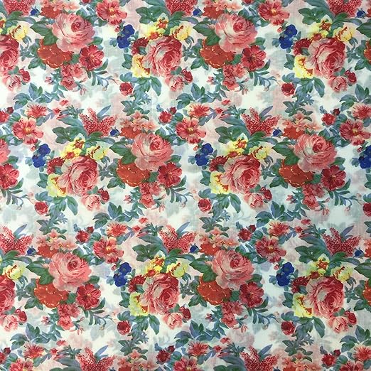 Smooth Touch Woven Blouse Dress Fabric Yellow Pink Summer Flowers