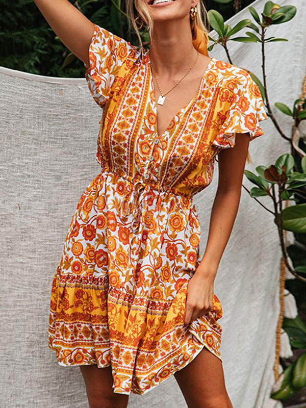 Teelynn Floral Print Mini Women S Dresses Boho Cotton Rayon Dress
