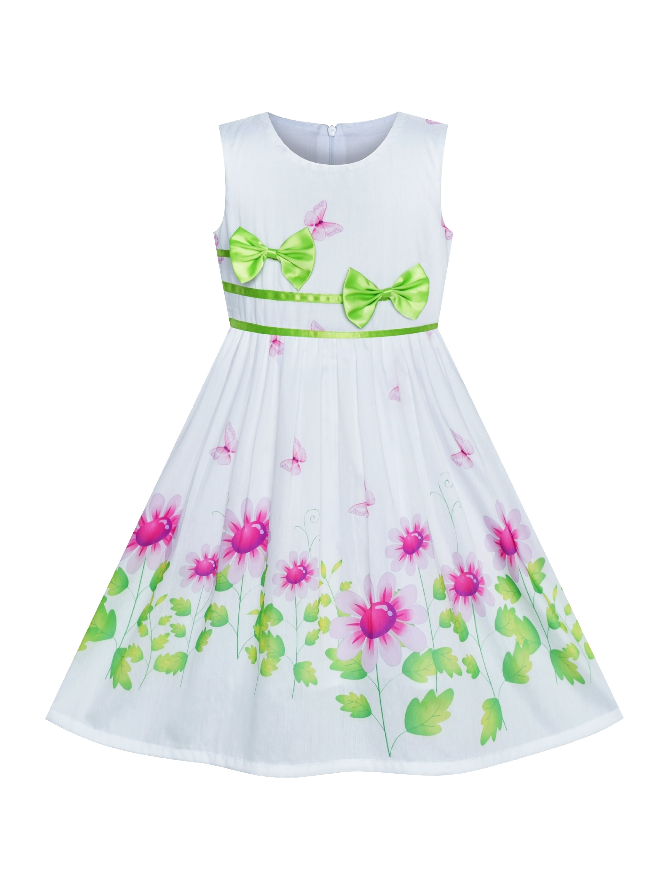 Sunny Fashion Girls Dress Flower Green Bow Tie Summer Sundress