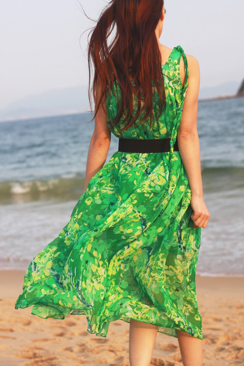 Summer Dress Beach Dresses Jade Green Dress Floral Summer Etsy