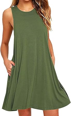 Yming Women S Sleeveless Pocket Casual Loose T Shirt Dress Summer