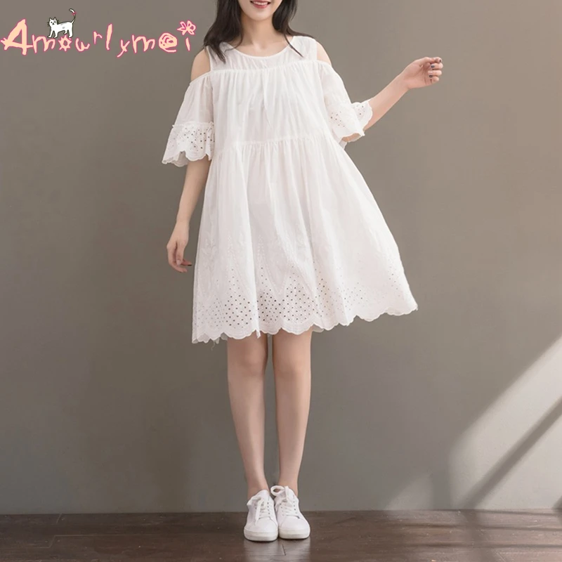 Amourlymei Women Summer Dress Japanese Style Mori Girl Off