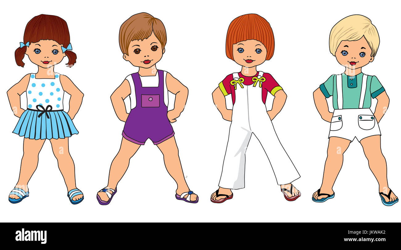 Cute Cartoon Boy And Girl With Hands Up Vector Illustration Boy