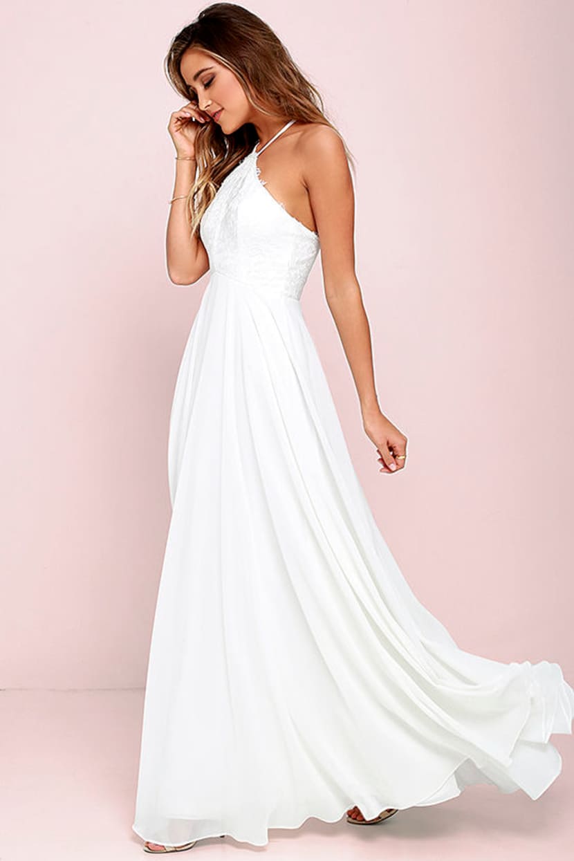Stunning Ivory Dress Maxi Dress Halter Dress Lace Dress 84 00