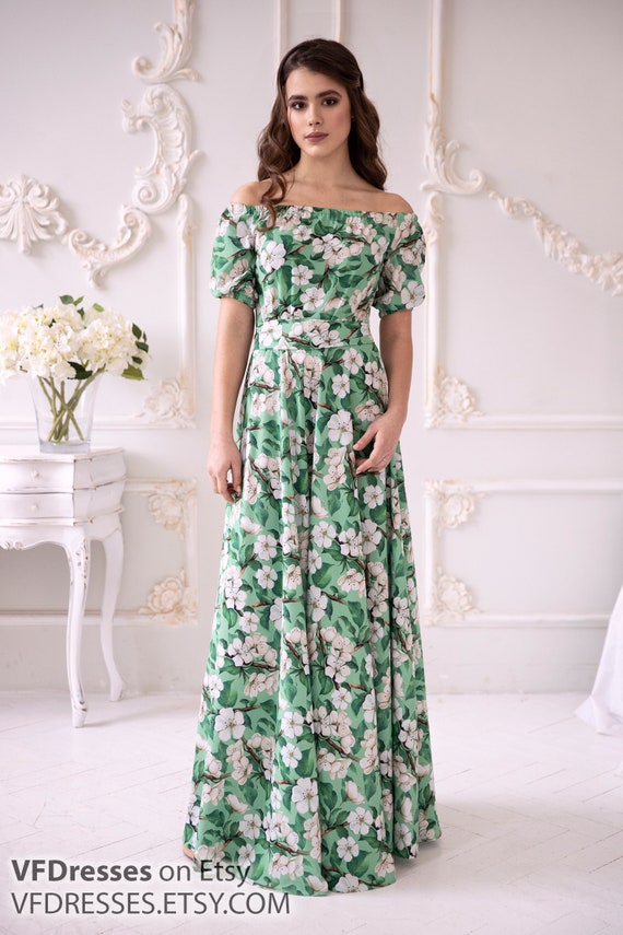 Green Summer Dress Maxi Dress Floral Summer Dress Floral Etsy