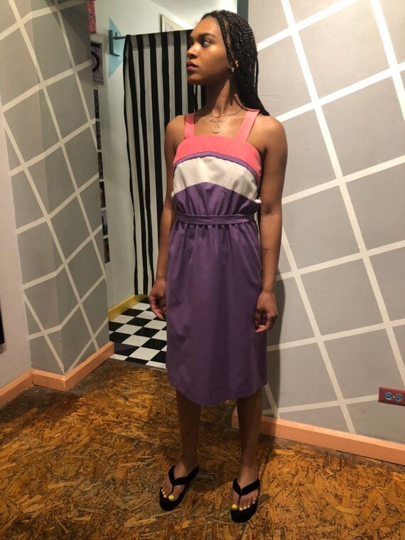 Vintage 80s Apron Jumper Summer Dress Pastel Color Block Etsy