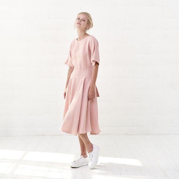 Linen Dress Belt Dress Pink Linen Dress Midi Dress Summer Etsy