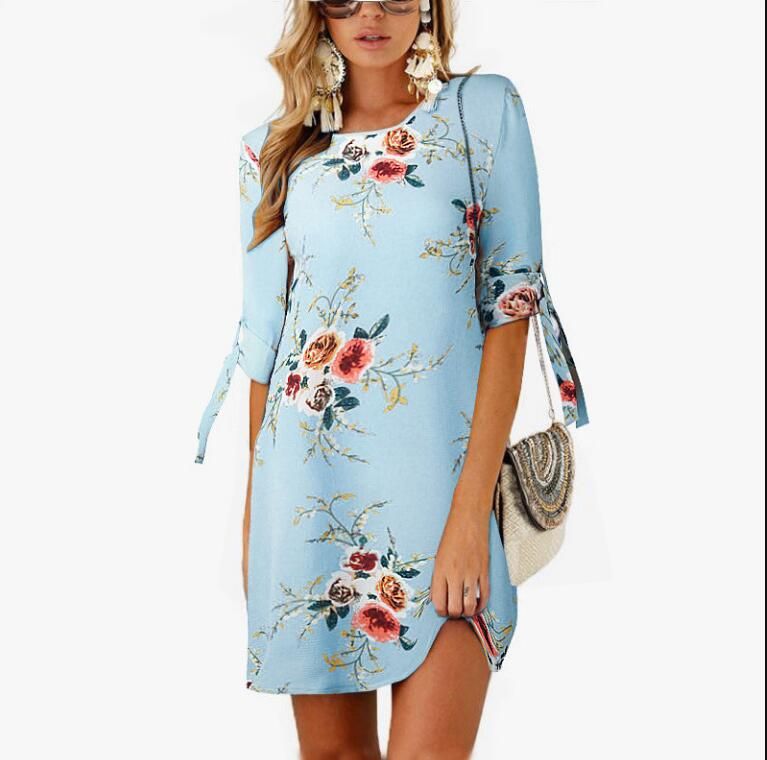 Hot Sale Women Summer Dress Sexy Straps Bohemian Floral Tunic