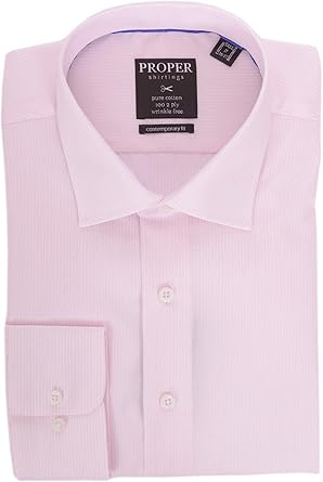 Slim Fit Pink Striped Spread Collar Wrinkle Free 100 2 Ply Cotton