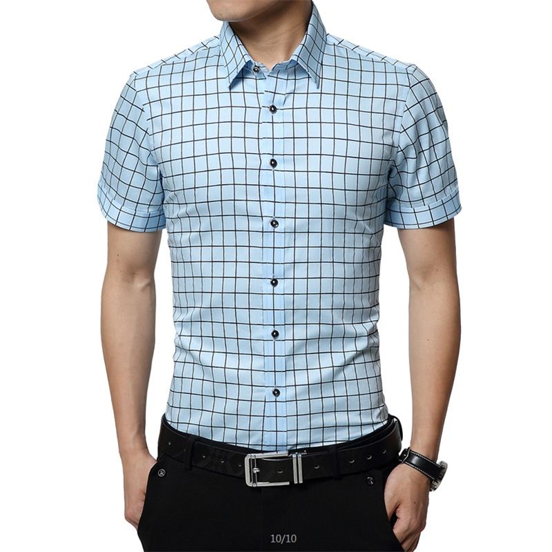 2019 Summer Men Dress Shirts Male Short Sleeve Plaid Shirt Cotton