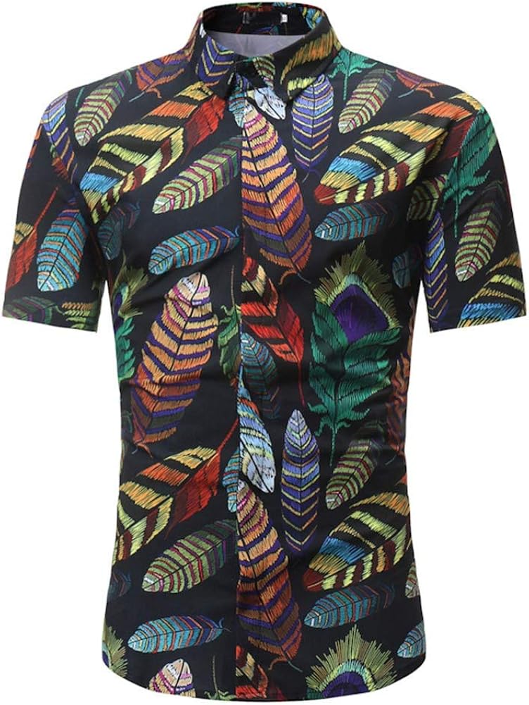2019 Men S Hawaiian Shirt Short Sleeve Mens Dress Shirts Slim Fit