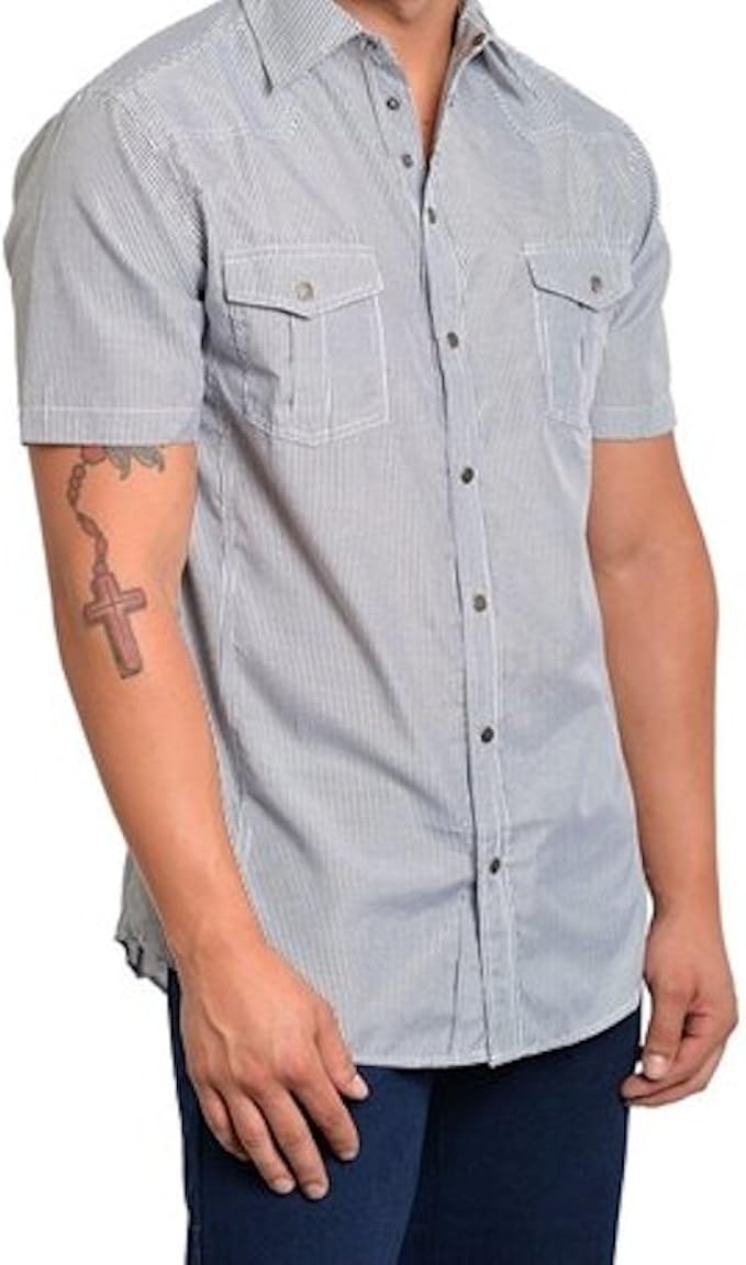 Men S Pinstripe Collared Snap Down Summer Dress Shirt S White