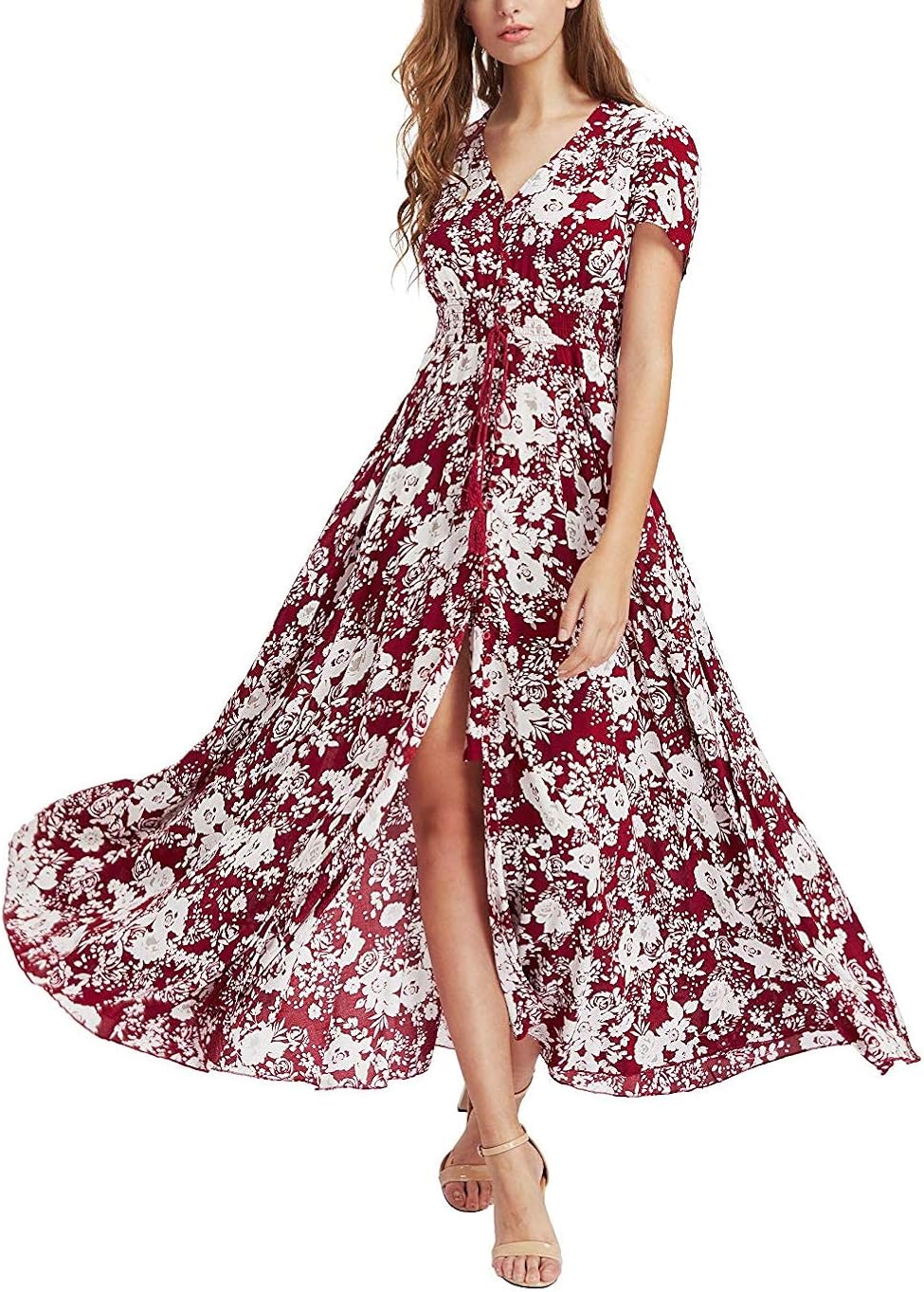 Relipop Summer Women Short Sleeve Print Dress V Neck Casual Short