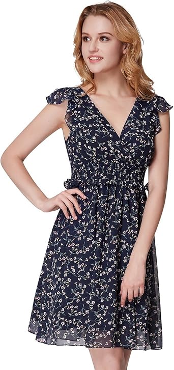 Short Summer Dresses V Neck Short Sleeve Button Cap Sleeve Women