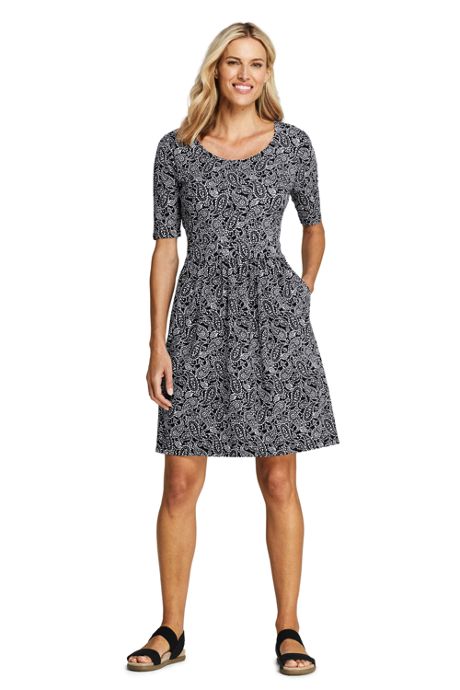 Women S Petite Elbow Sleeve Knee Length Fit And Flare Dress