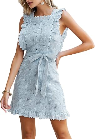 Fashiomo Women S Lace Floral Hollow Out Mini Dress Ruffle Tie