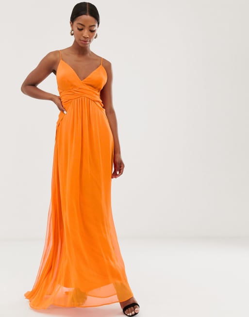 Asos Design Bridesmaid Cami Maxi Dress With Ruched Bodice And Tie