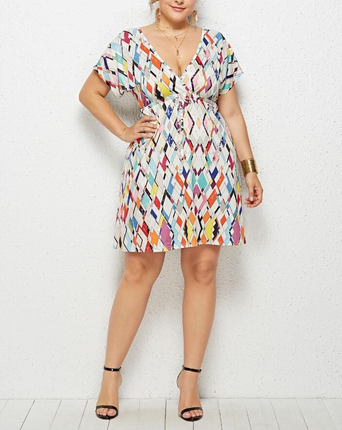2020 New Print V Neck Plus Size Summer Dress Holiday Style Woman