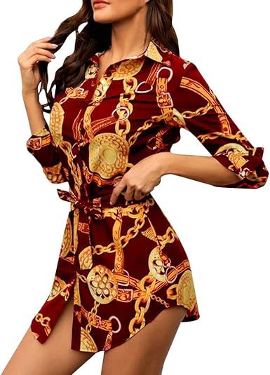 Wenovl Summer Dresses For Women Women Long Sleeve Chain Print
