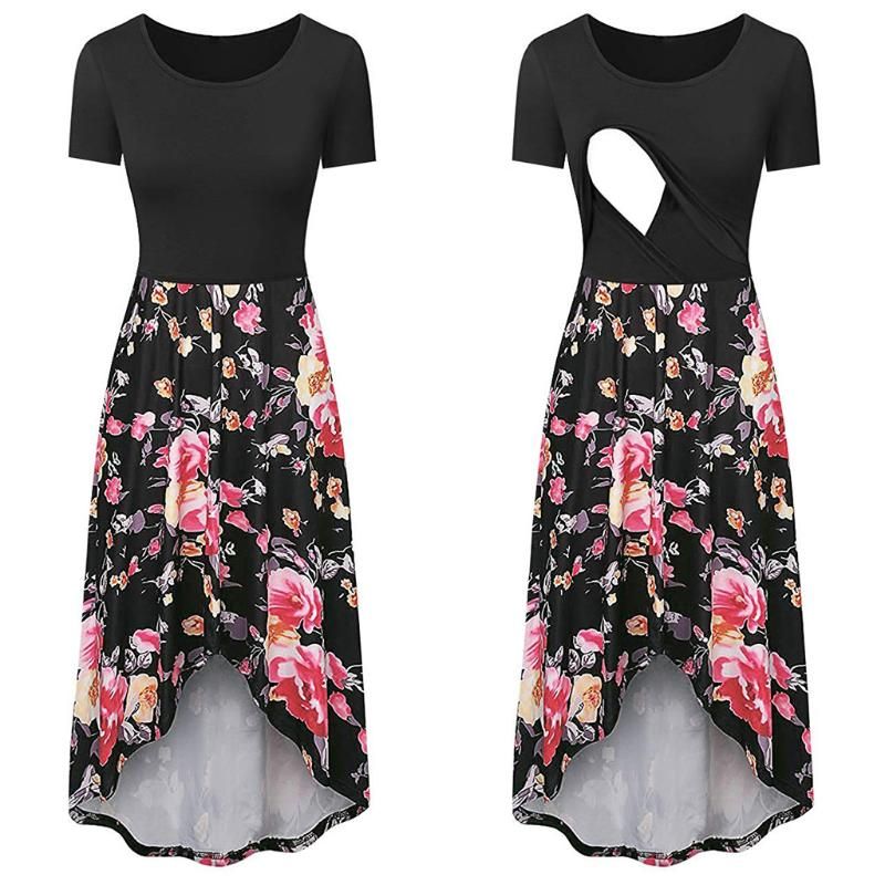 2019 Womens Pregnancy Dress Summer Long Nursing Solid Maternity