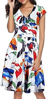 Wdswz Women S Dress V Neck Floral Printed Casual Work Stretch