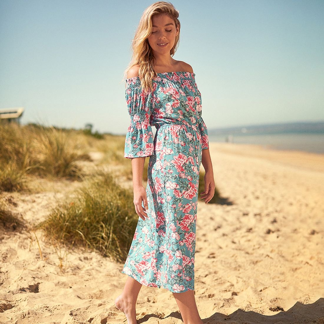 Off The Shoulder Coverup Dress Green Floral Target Australia