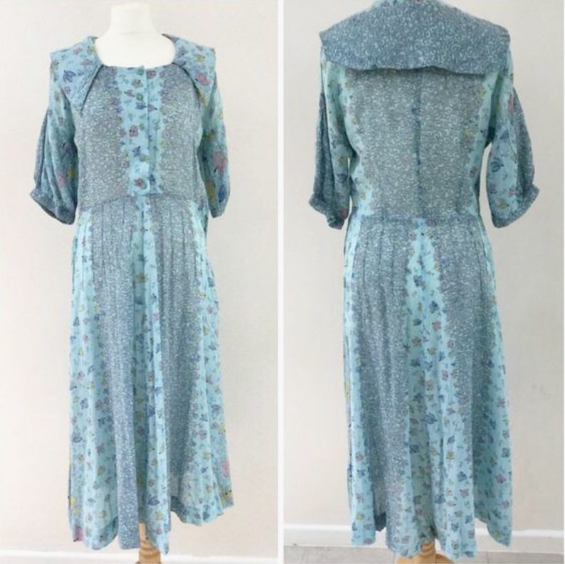 Blue Floral Maxi Dress Uk Size 12 1950s Vintage Button Front Etsy