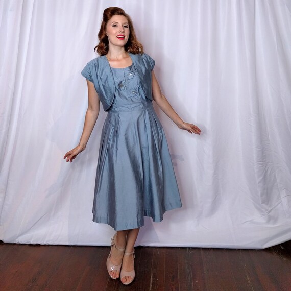 Vintage 1950s Blue Sleeveless Summer Dress Matching Bolero Etsy