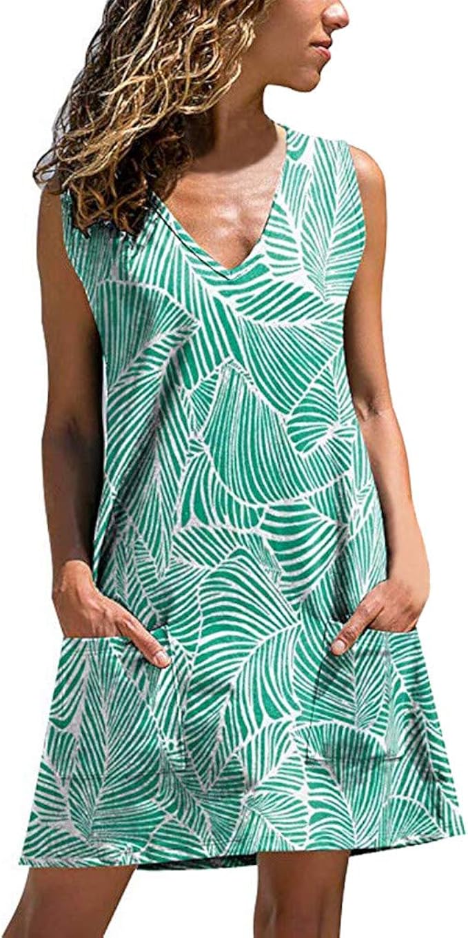 Casual Dress For Women Loose Straight V Neck Leaves Print With Front Pockets Leisure Summer Dresses At Amazon Women S Clothing Store