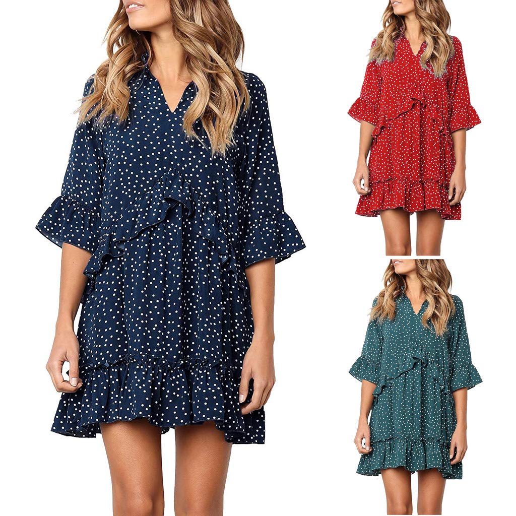 Amazon Com Einccm Women S Ruffles Half Sleeve Tunic Dress Polka