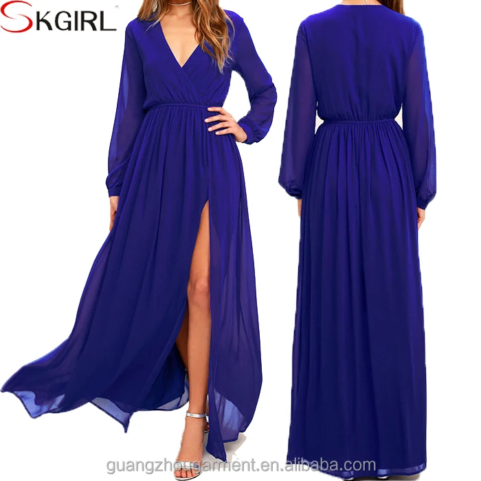 Blue Chiffon 2020 Sexy Summer Evening Dresses Deep V Neck Side
