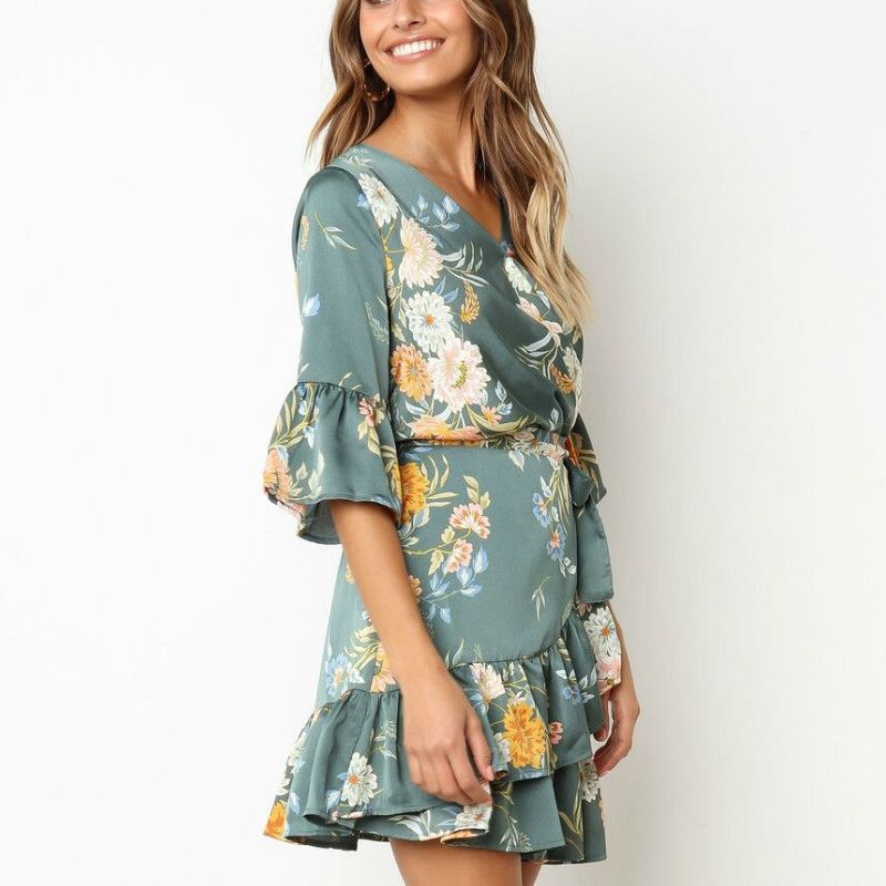 Buy Women Summer Fashion Dress Ruffles Half Sleeve Casual Dress