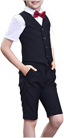 Amazon Com Yufan Boys Summer Formal Suits Vest Shorts Shirt Bow