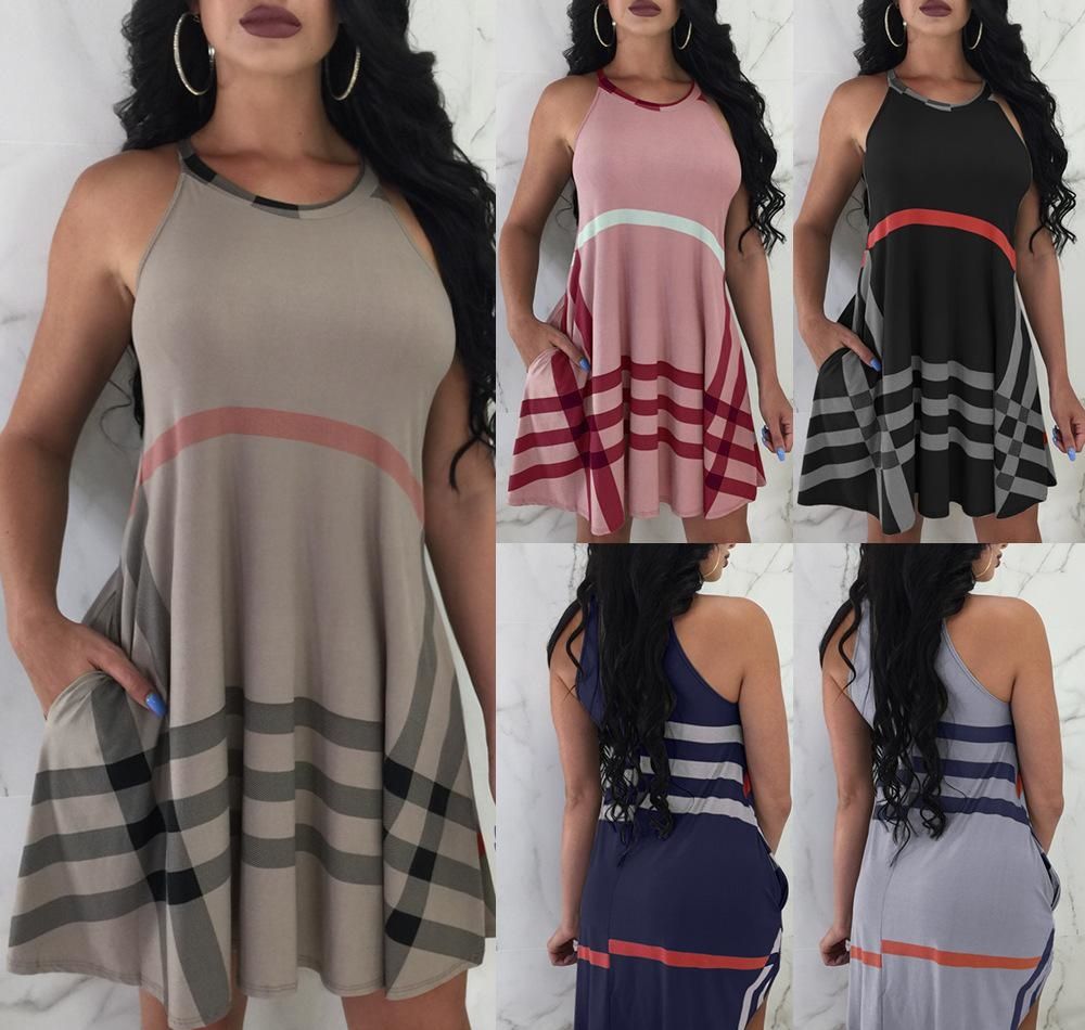 Women Summer Halter Dress Sexy Sleeveless High Waist England Plaid