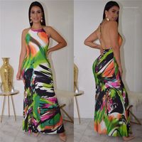 New Women Maxi Dress Halter Neck Floral Print Sleeveless