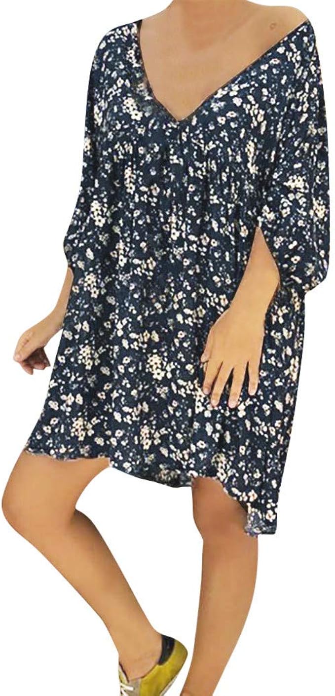 Women Plus Size Cocktail Dress V Neck Casual Floral Swing Summer