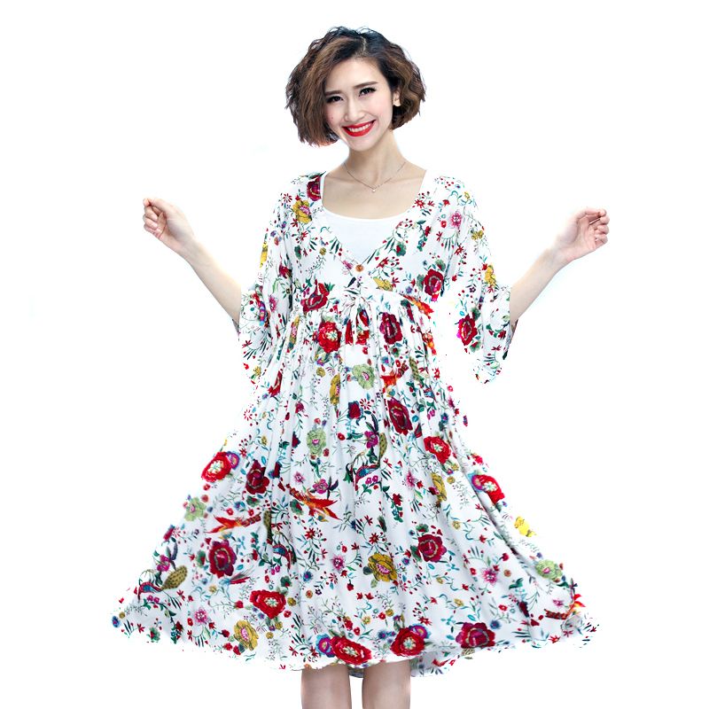 Women Dresses Summer Japanese Style Floral Printed Short Sleeve