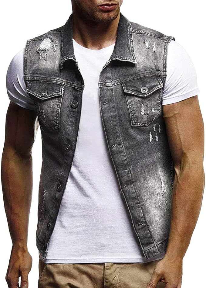 Amazon Com Modoqo Men S Denim Jacket Vest Sleeveless Button