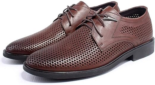 Men S Summer Leather Dress Shoes Hollow Out Lace Up Breathable